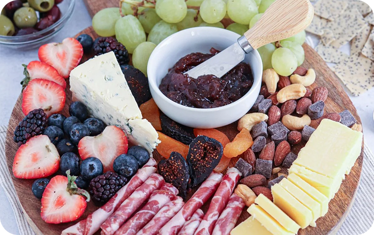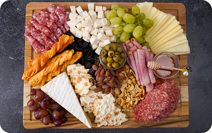 Artisan boards crafted with premium meats, cheeses, fruits, and gourmet pairings. Ideal for small gatherings, gifts, or private events.